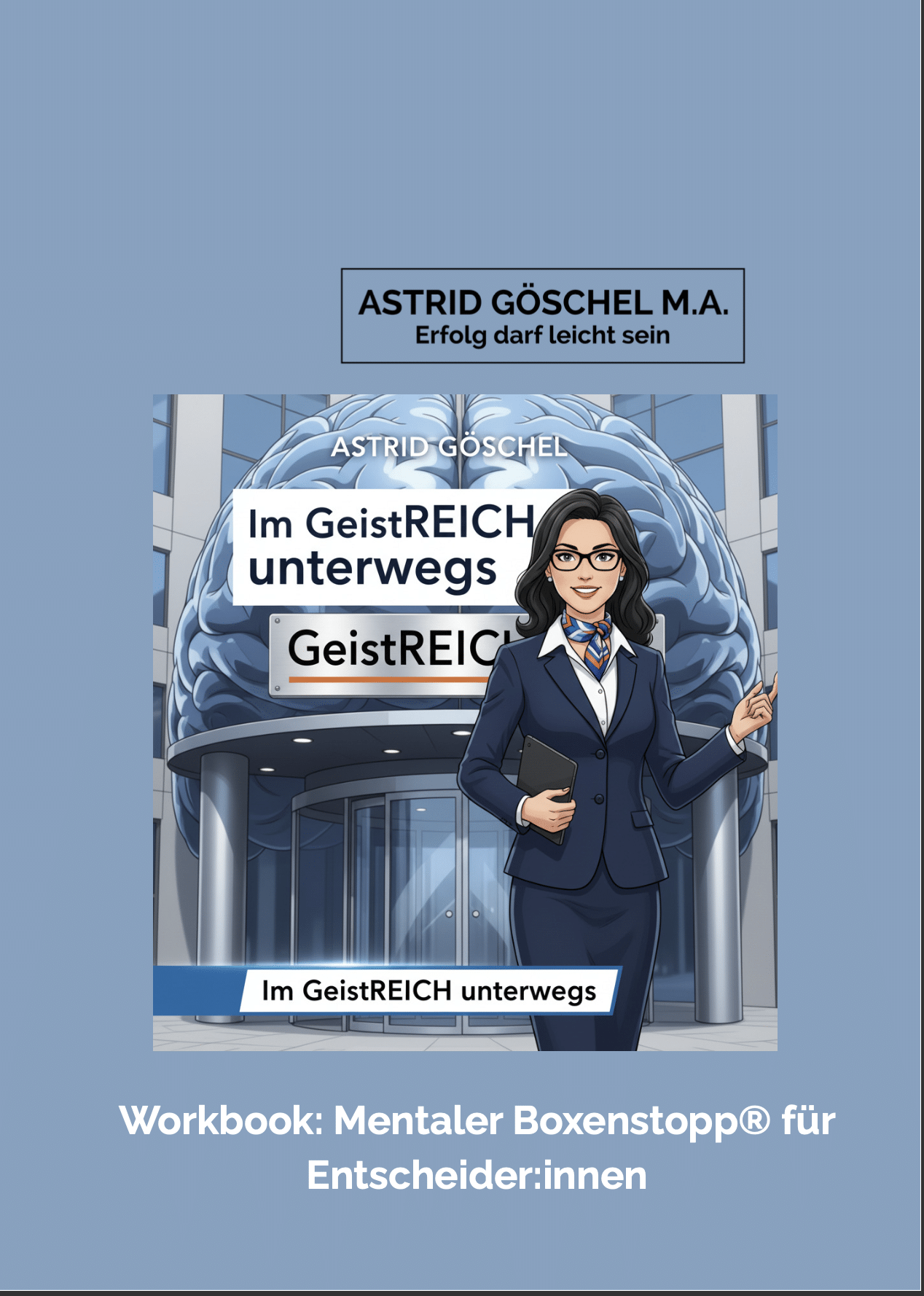 Das smarte Arbeitsbuch ist Teil ihres „Mentalen Boxenstopps Premiumformats“ für Entscheiderinnen und Entscheider, die schnell und gezielt einen mentalen Check durchführen wollen, um vom Denken direkt ins Handeln zu kommen.