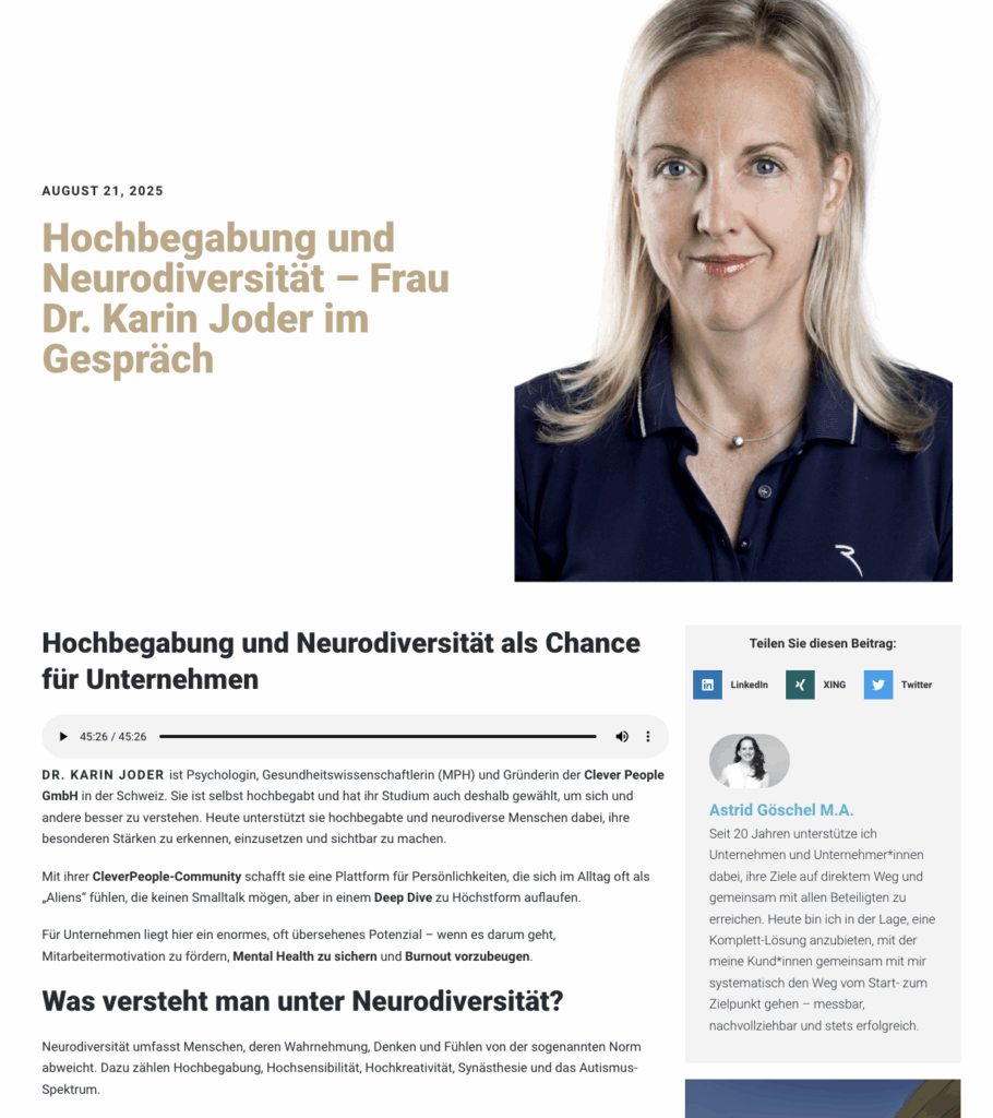 >> Mehr Information (Blogartikel und Podcastinterview) zum Thema „Hochbegabung und Neurodiversität“ finden Sie hier“: