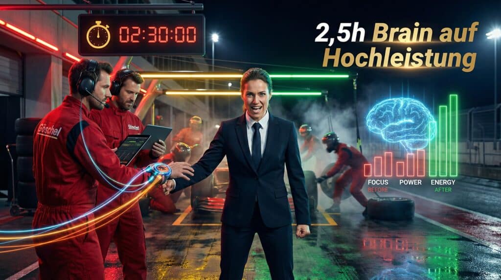 Anschließend laden wir Ihre Energie wie beim Boxenstopp im Rennen schnell wieder auf – mit minimalem Zeitaufwand und maximaler Wirkung.
