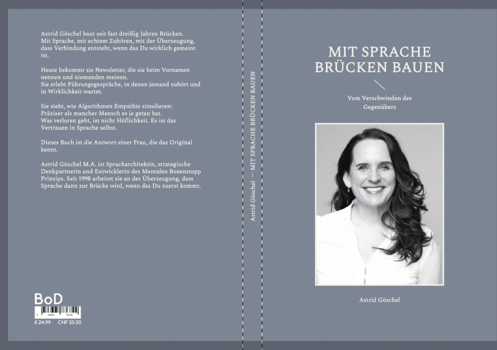 Astrid Göschel schreibt aus dreißig Jahren Praxis mit Sprache, Rhetorik und echter Verbindung. Kein Ratgeber. Ein Buch, das nicht optimiert, sondern klärt.